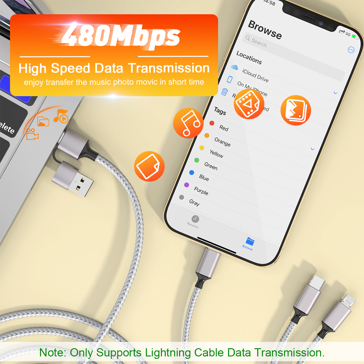 Product name:3 In 2 Fast Charging Usb Cable Port:USB A/Type C to Lightning +Type C+Micro USB Color:Gray Length:1.8M/6FT Warranty:12 Months Product Sataus:Stock OEM/ODM:Welcomed