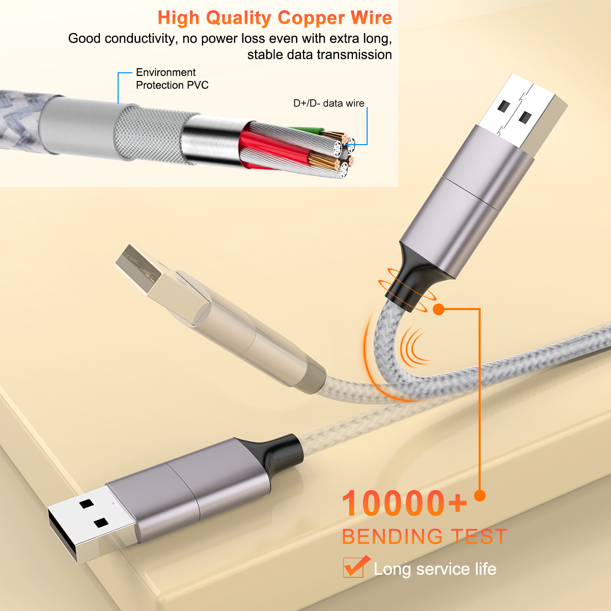 Allkei Multi 5 In 1 Universal USB Fast Charging Cable 3A 1.8M/6FT USB A/Type C To Lightning +Type C+Micro USB Nylon Braided Sync Charge